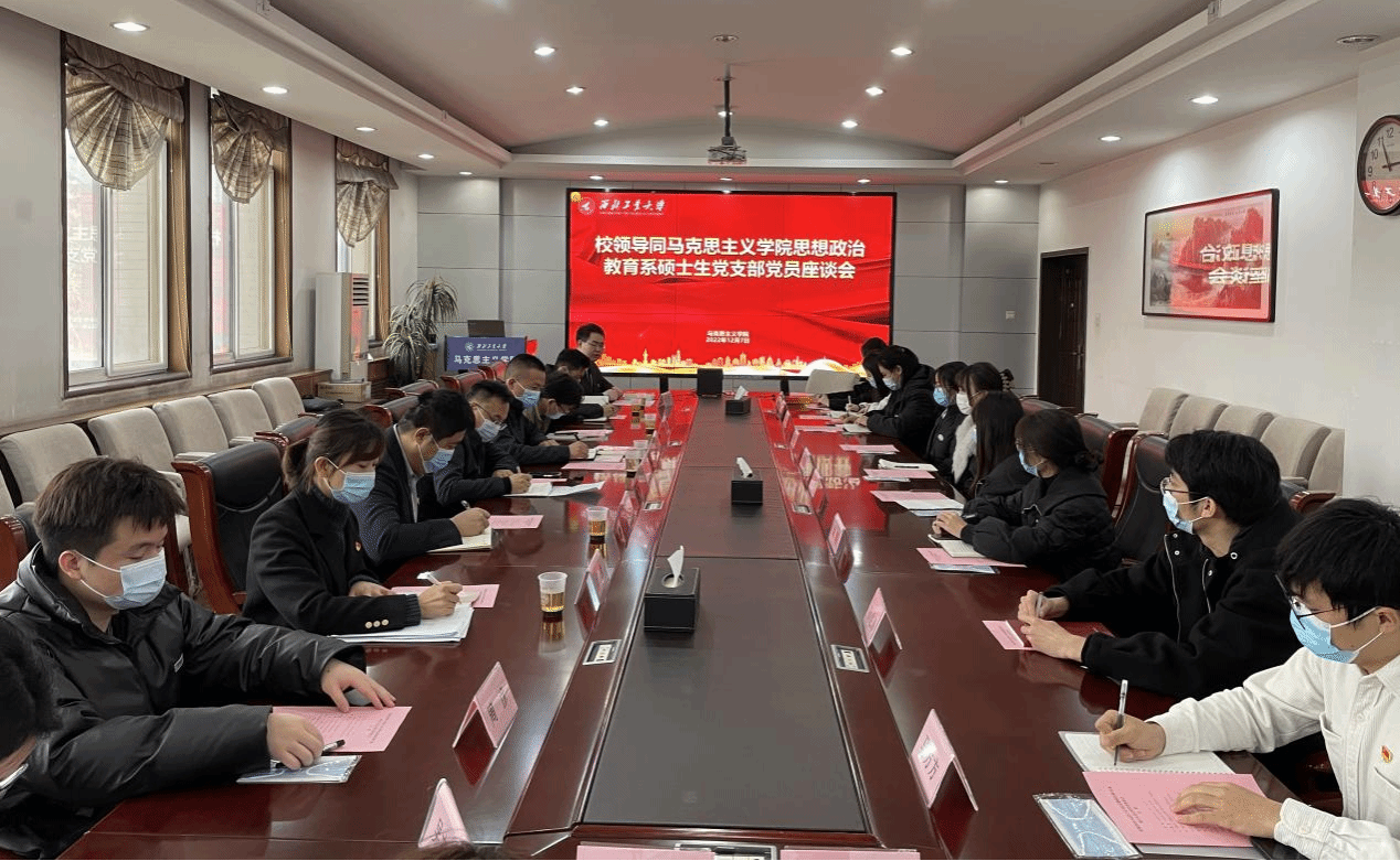 思想政治教育系硕士生党支部,同支部党员、发展对象和入党积极分子进行座谈交流。学院党委副书记(主持工作)蒲传新、党委副书记李刚、团委书记王换、博士生辅导员高红波一同参加会议。会议由思想政治教育系硕士生党支部书记张昊主持。