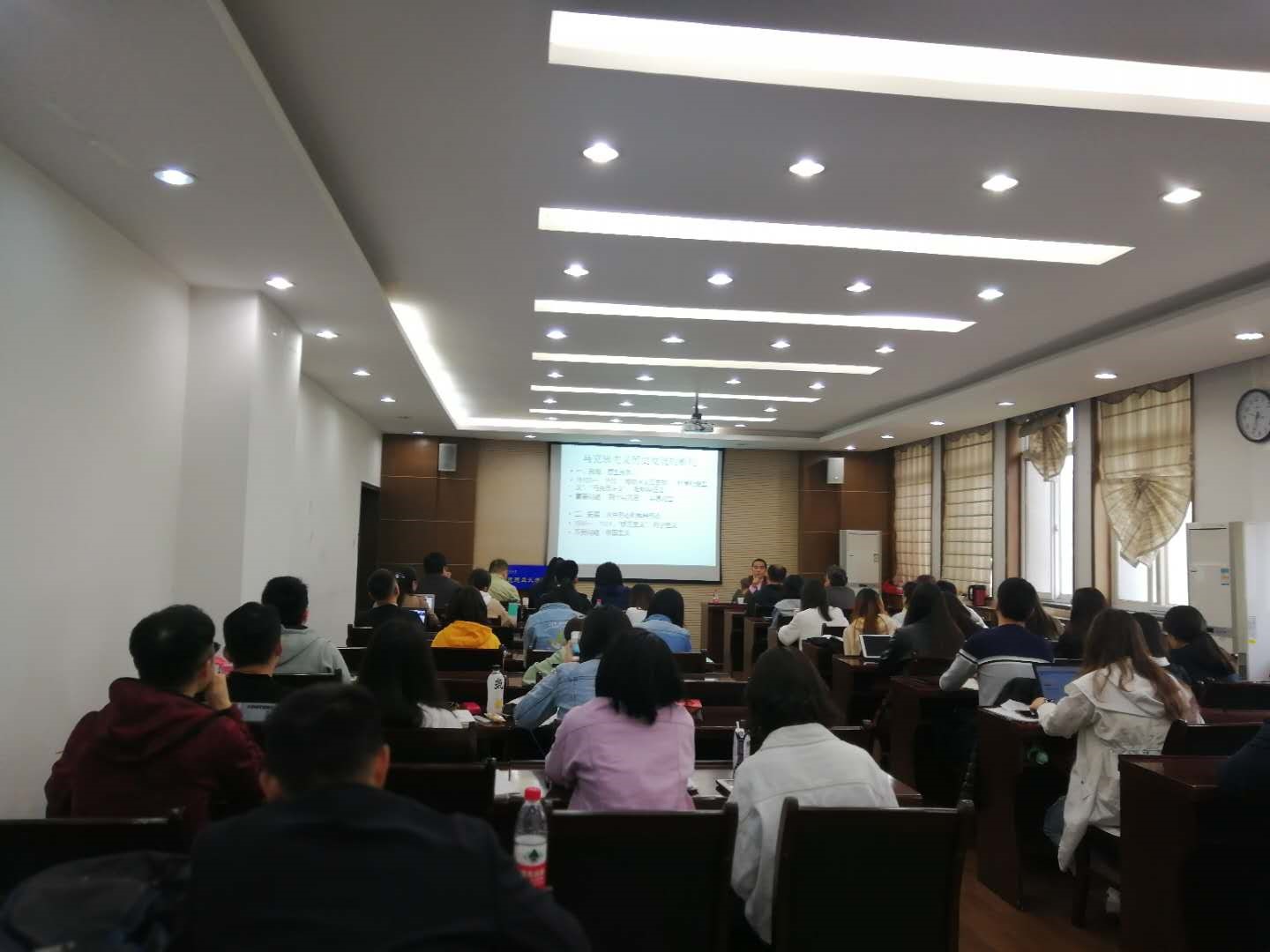 胡大平教授第一个专题“马克思主义思想史的结构和变迁(导论)”,从“马克思主义理论构成及其社会科学研究一般框架的对照”和“马克思主义历史叙事框架”,“马克思主义历史发展的断代”视角对马克思主义的形成、拓展、双元对立、增生扩散或多样化时期以及马克思主义在世界的发展和传播进行了探讨。第二个专题“从西方马克思主义到马克思主义”立足于马克思主义的主旨、理论构成、基本立场和方法宏观地透视20世纪西方马克思主义的逻辑发展——其旨趣、主题的历史变迁。第三个专题“何为马克思主义”从“马克思主义是一个科学(思想史)对象”为逻辑,探讨了马克思主义在当代的历史使命和进一步需要思考的时代课题。在报告中,胡大平教授多次与师生进行了对话,并强调一定要“回到马克思”——多读马克思的经典著作,运用马克思的方法论分析问题,才能更好的理解和学习马克思主义理论。