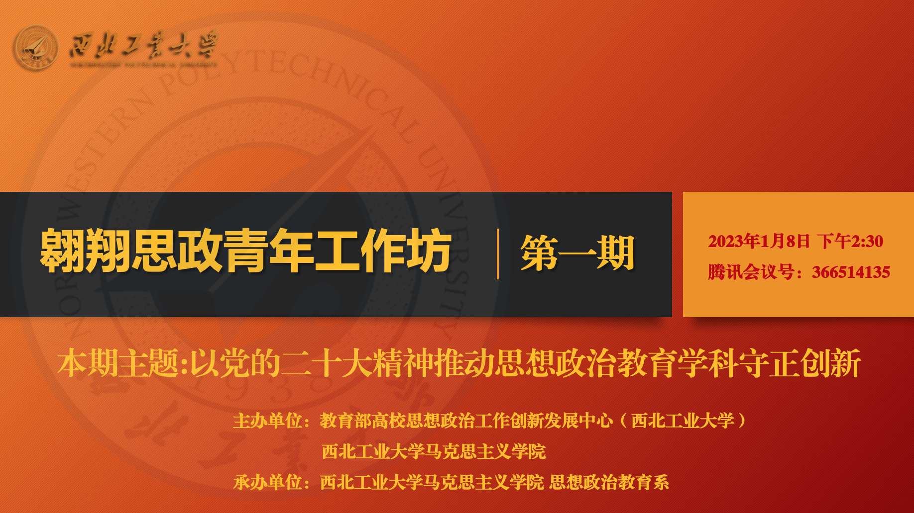 翱翔思政青年工作坊(第一期)在线上成功举行。本工作坊由教育部高校思想政治工作创新发展中心(西北工业大学)、91国产
