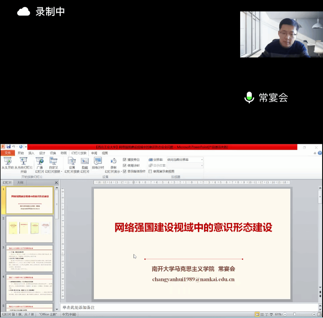 第三位发言的常宴会副教授,主题是“网络强国建设视域中的意识形态建设”。他结合习近平总书记对网信工作的重要论述,强调当前互网络思想宣传工作的重要性,并以历史唯物主义视角转入意识形态建设的影响因素和客观规律的深度研究。