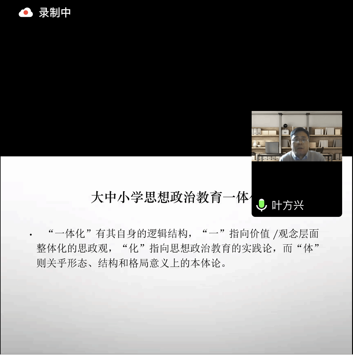 随后,叶方兴副教授做了题为“化为一‘体’:理解‘大中小学思想政治教育一体化’的一个前提性问题”的主题发言。他指出,当前多数研究更多探讨的是“化”的策略,但事实上化为什么“体”这一前提性问题更加重要。