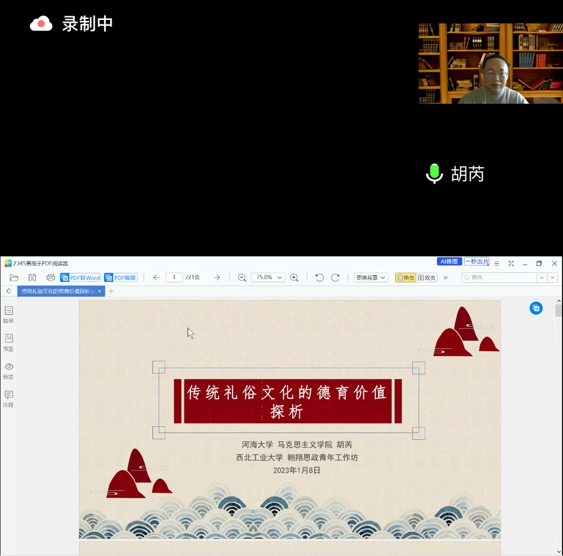 随后,胡芮副教授以“传统礼俗文化的德育价值探析”为题,从传统礼俗的现代德育价值、当前实践中的工具化困境,以及传统礼俗精神如何复兴三个方面深入探讨了作为资源和载体的中华优秀传统文化与思想政治教育相结合的问题。
