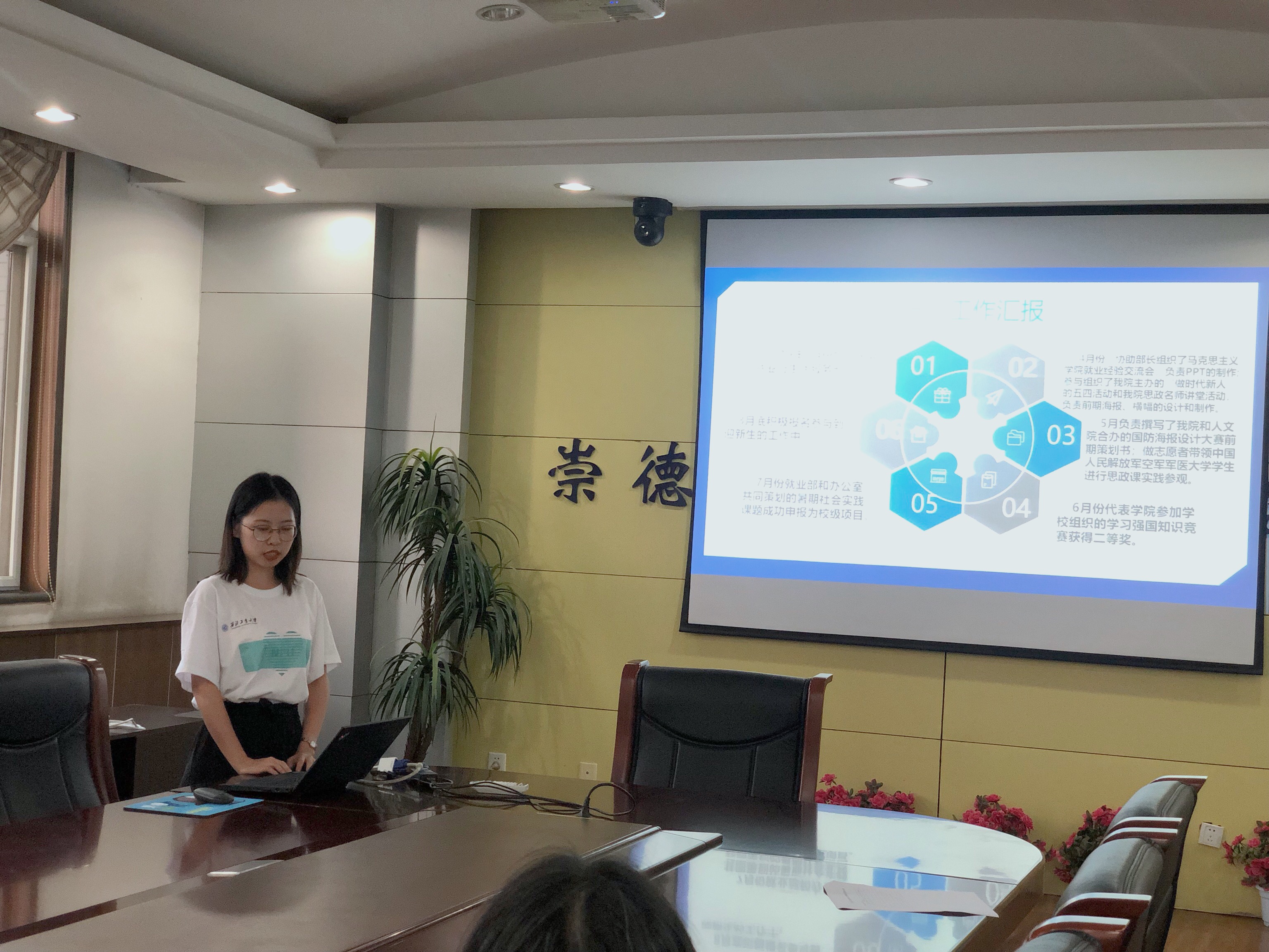 董咪咪总结了自己半年来的工作经历,在研究生会未来的发展规划中,她指出,要制定正确合理的工作规划,划清研会各个部门的职责,保证其有条不紊的运转;同时要组织一系列彰显马院特色的活动,在全校提高我院的存在感和知名度。