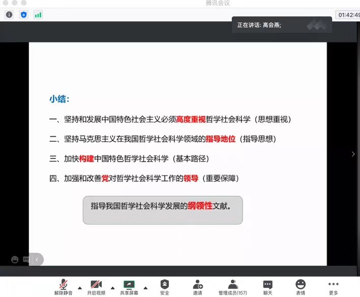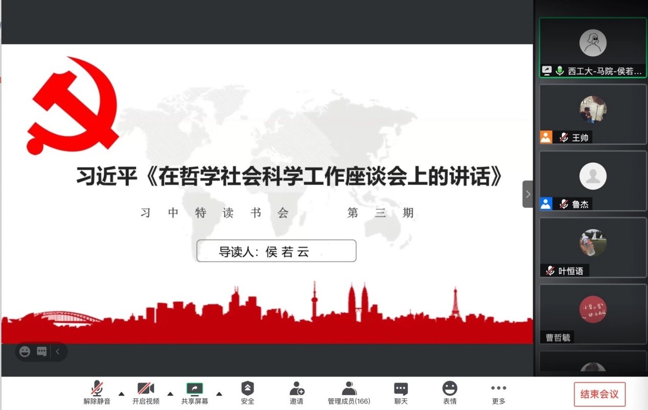 2020级全体硕士研究生身处革命圣地延安,在亲身领悟我党发展历程与习近平总书记辛勤的知青岁月后于晚7:30,参与习近平新时代中国特色社会主义思想学习读书会开启第三期读书交流活动。此次活动通过腾讯会议线上进行,由我院硕士生谢雨姿主持,教育部高等学校社会科学发展研究中心党建思政研究处处长、研究员朱喜坤,91国产