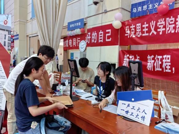 “你好同学,先把身份证给我”,随着迎新志愿者的一阵忙碌,一个个新生顺利完成入学报到。随后,志愿者们将学院精心准备的大礼包送到每一位新生手里。秋天的第一杯奶茶或许尚未拥有,但学院送上的“入学礼”却是暖意融融。帆布包是祝愿新生在新起点新征程上开启学业生涯、提升专业水平,马克杯意蕴“一辈子”,传递着一世工大情,一生青马意。
