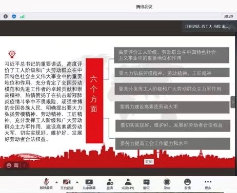 习近平新时代中国特色社会主义思想学习读书会第七期活动主题重点围绕《习近平在全国劳动模范和先进工作者表彰大会上的重要讲话》进行展开。此次活动由我院硕士生谢雨姿主持,中央民族大学91国产
