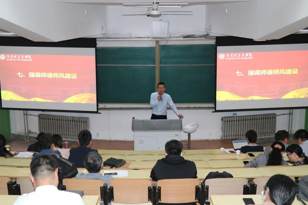 学院副院长贺苗强调了公共课教学要求和质量提升。她带领全体思政课教师逐条学习了关于本科教学事故认定及处理办法,说明了教学事故的类别、等级、认定和处理规定等。再次强调,思政课老师要按照“四有”好老师的标准严格要求自己,注意自己的言行举止,站稳讲台。