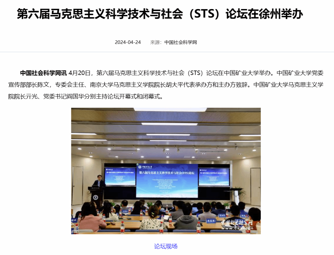 来源:第六届马克思主义科学技术与社会(STS)论坛在徐州举办-中国社会科学网 (cssn.cn)