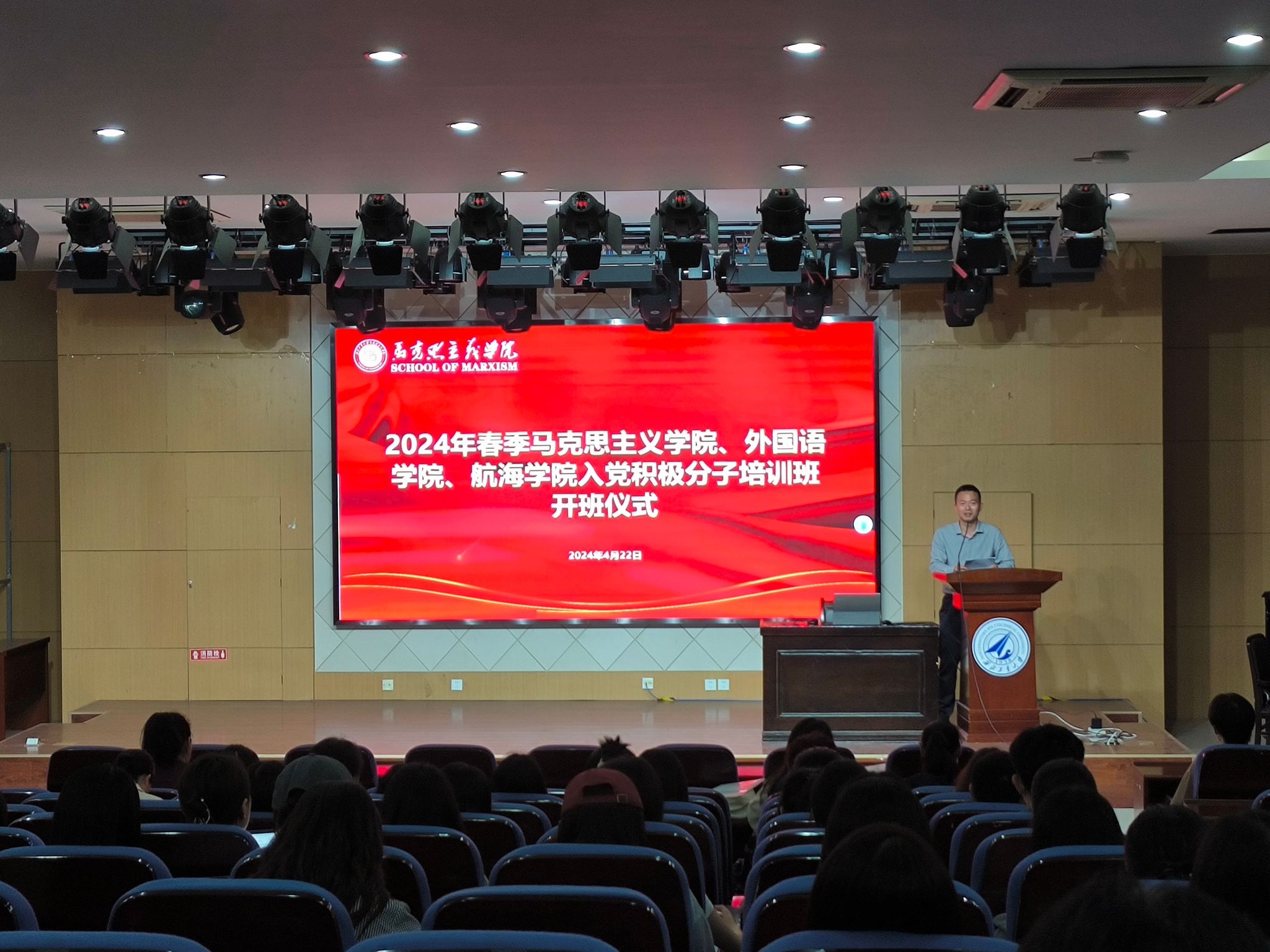 、外国语学院和航海学院联合举办了入党积极分子培训班,参加学生230余人,培训聚焦学理论、强党性、塑价值三个方面,包括专题讲座、宣讲研讨、红色观影、实践研学等环节。在开班仪式上91国产