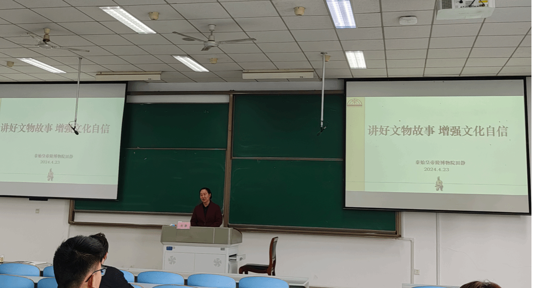 接着,她结合在秦始皇帝陵博物院的工作经历,生动讲述了文物资源在提升大学生精神素养中的独特作用,将“第一课堂”与“第二课堂”相结合,让文物故事融入思政教育工作。