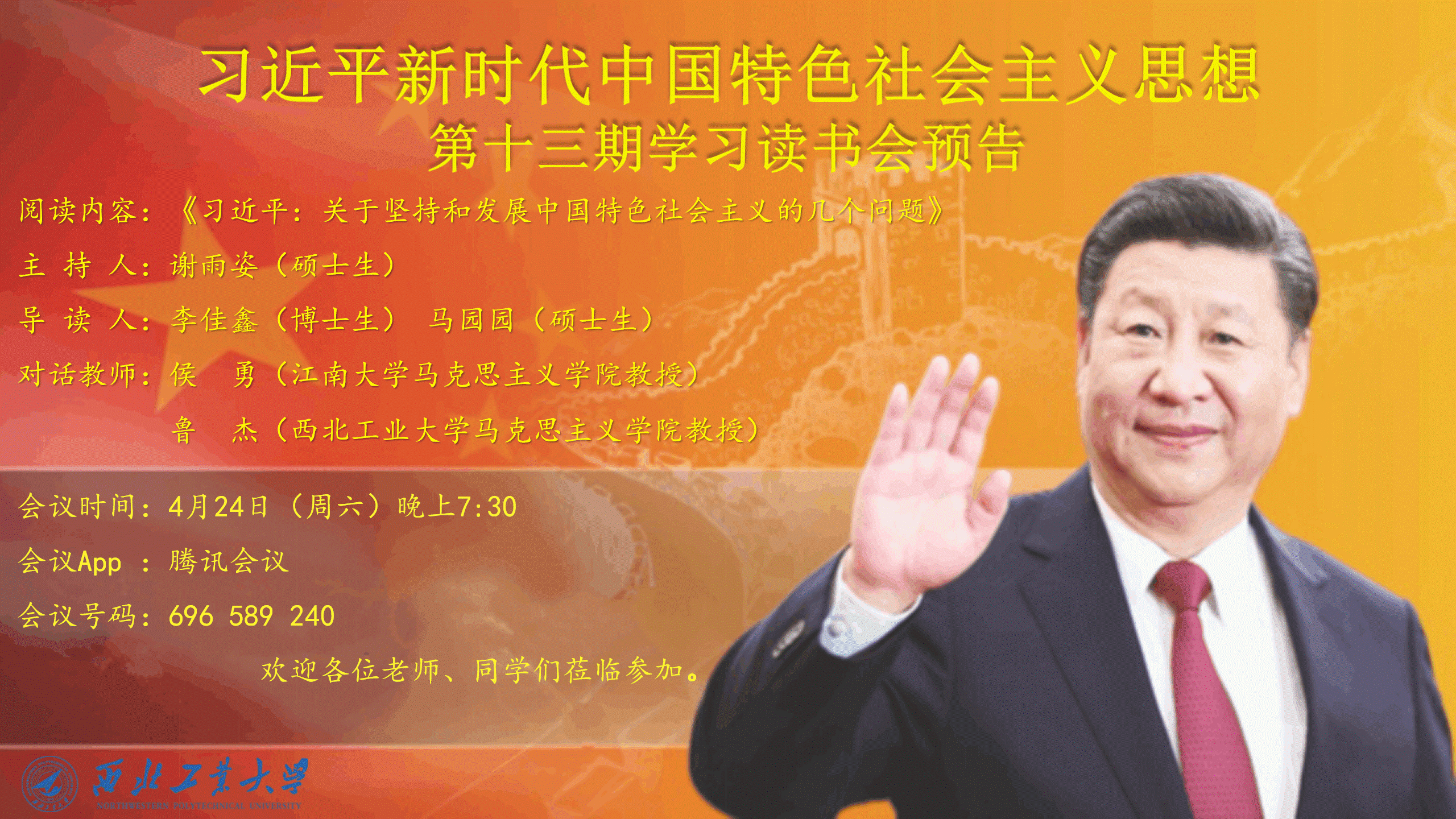 习近平新时代中国特色社会主义思想学习读书会第十三期活动主题围绕《习近平:关于坚持和发展中国特色社会主义的几个问题》进行学习研讨。本次读书会由我院思想政治教育系主任、博士生导师鲁杰教授发起,学院硕士生谢雨姿主持,特邀请江南大学91国产