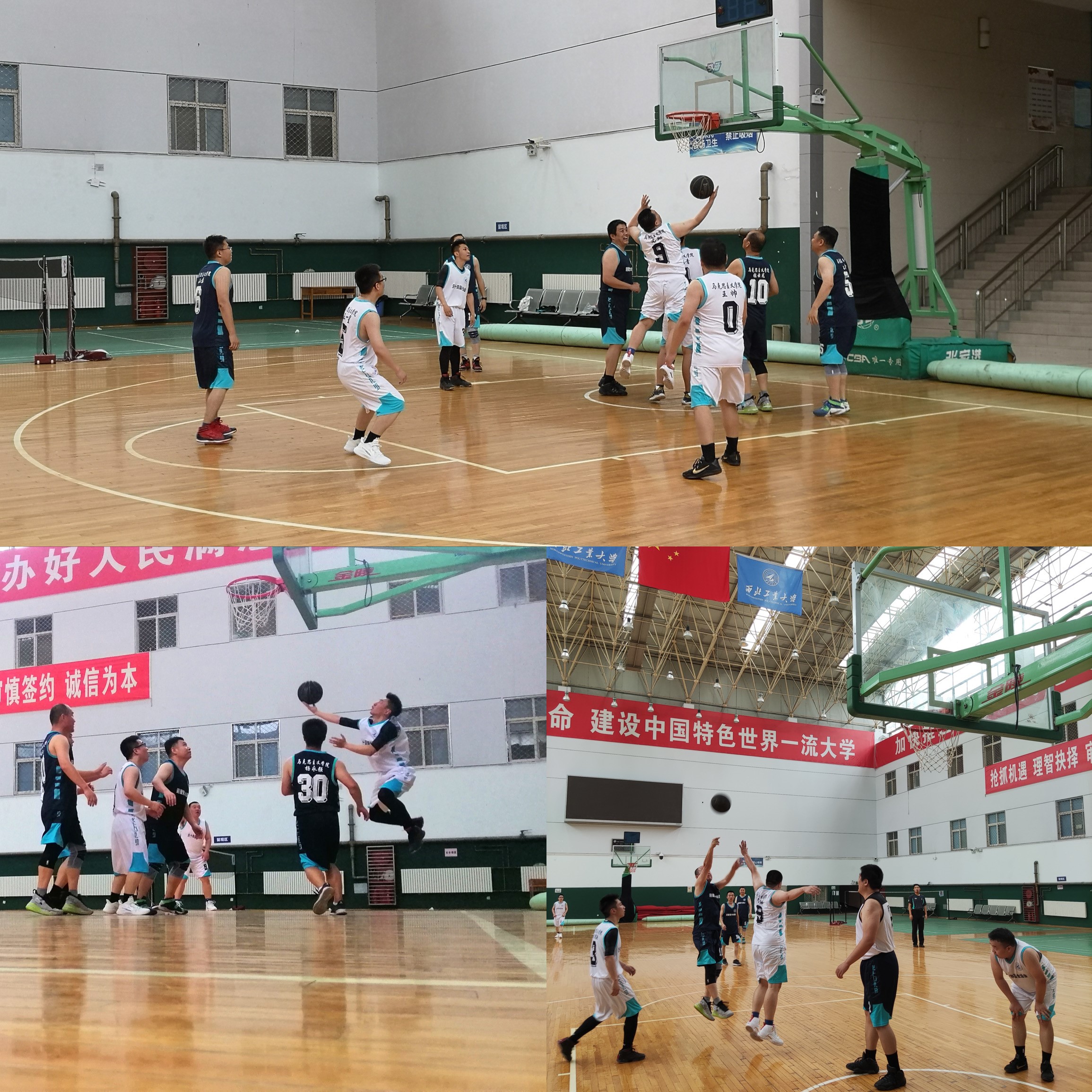 在友谊校区翱翔体育馆举办“迎建党100周年,庆十四届全运会”师生篮球赛。
