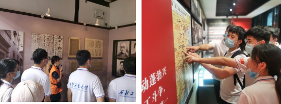最后,实践队一行来到了毛泽东旧居陈列馆,学习红色历史,追寻伟人足迹。陈列馆本身就是一栋具有百年历史的石库门老建筑,馆内的设置也别出心裁,保存了大量毛泽东同志珍贵的历史资料及实物。同学们在两位高中生志愿者的讲解下,跟随声音指引,追寻历史伟人的足迹与心路,纷纷表示感触颇深。