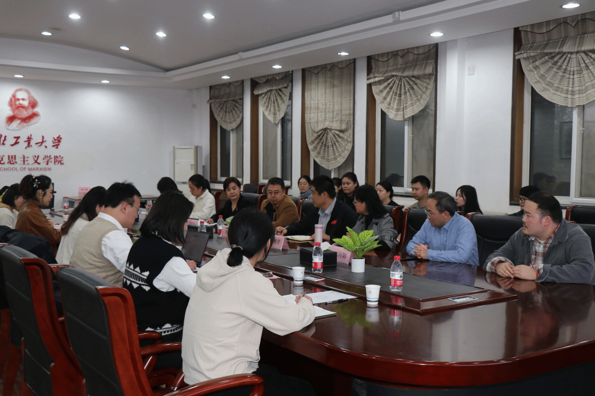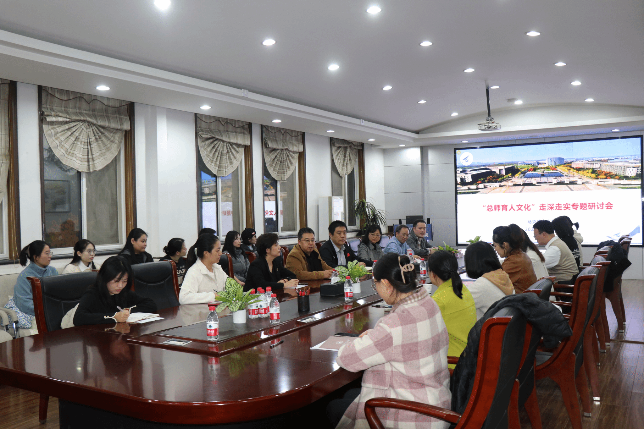 召开推动“总师育人文化”走深走实专题研讨会。学院领导班子、各系教学主任、教师代表、院办全体工作人员及学生代表参加会议,会议由副院长贺苗主持。