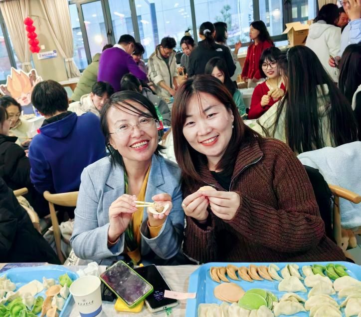 学院院长杨云霞、党委书记王彦革、副院长张云龙、副院长贺苗以及党委副书记耿云辉与学院师生欢聚一堂,围坐一起,大显身手,争当“饺饺”者。“金元宝”“柳叶饺”“平安饺”……轮番出场,好不热闹!
