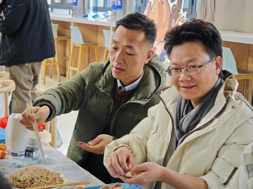 包饺子活动开始前,学院党委书记王彦革、党委副书记耿云辉与学工主管、辅导员、学工干部深入学生宿舍,开展新年慰问,深入了解学生的思想、学习和生活情况。走访期间,院领导与同学们亲切交谈,听取学生对宿舍环境、学习成长等方面的意见和建议,提醒同学们合理规划作息时间,并重点排查宿舍安全隐患和开展安全教育。