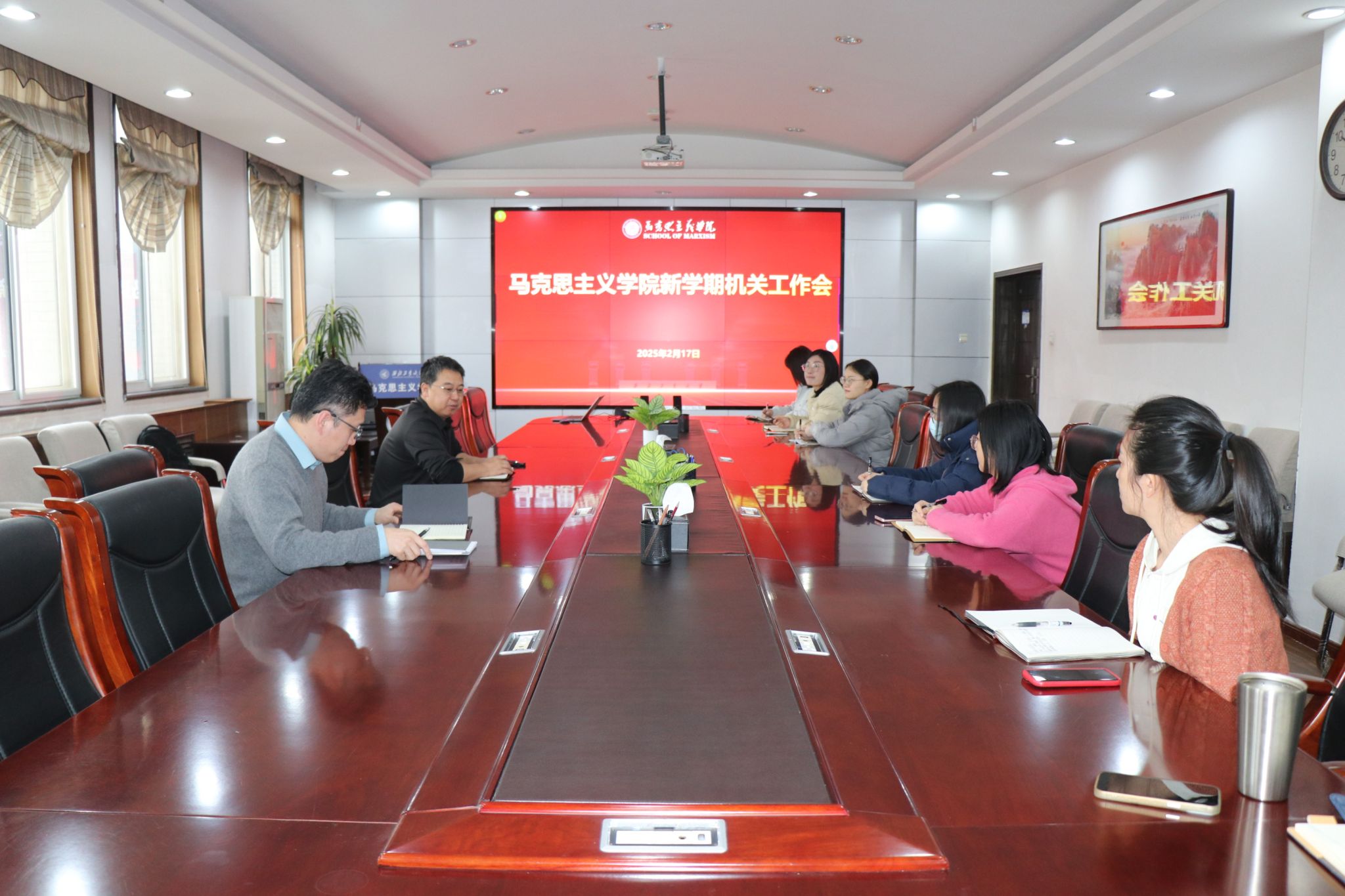 办公室召开新学期机关工作会议,会议由学院党委书记王彦革主持。