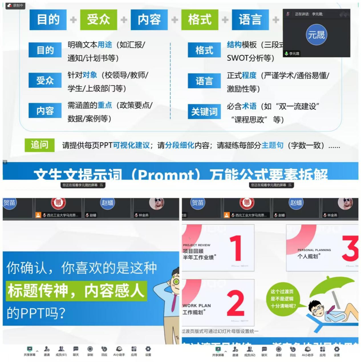 邀请校科学技术研究院科研质量保密与科研服务大厅办公室主任、助理研究员李元晟老师开展了题为“AI赋能:高表现力工作型PPT怎么做”的第31期以研促教seminar专题讲座。本次会议由西北工业大学教务部、科学技术研究院、91国产