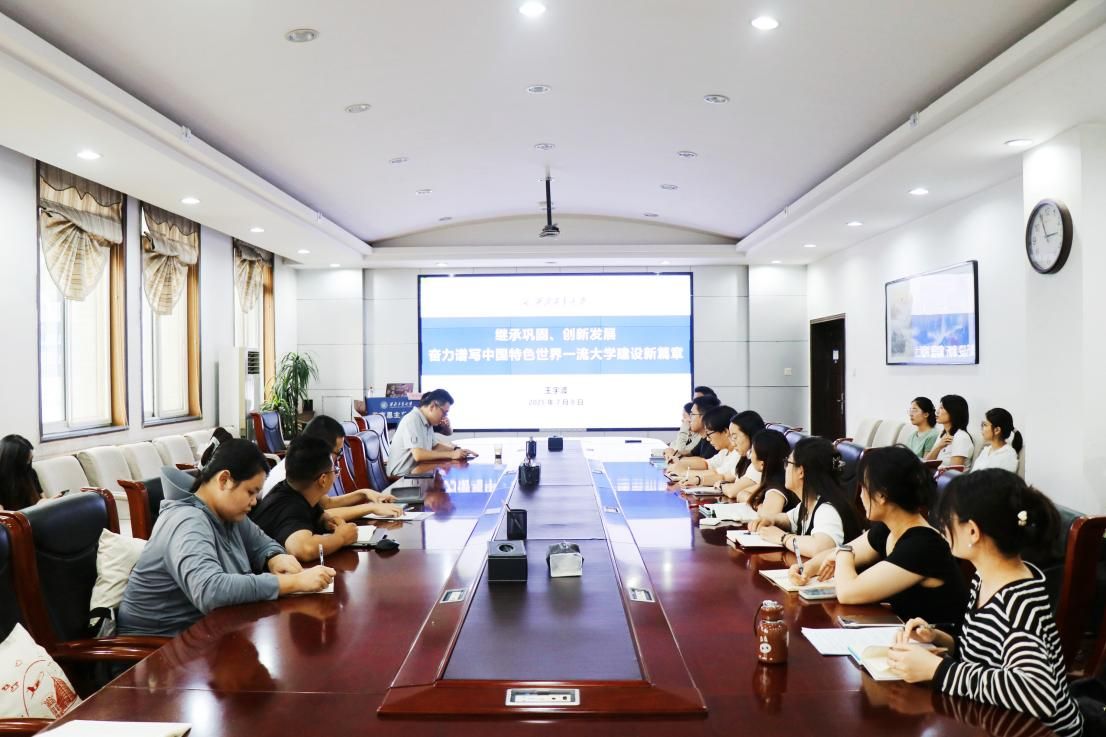 208会议室,为学院研究生讲授《继承巩固、创新发展 奋力谱写中国特色世界一流大学建设新篇章》专题思政课。
