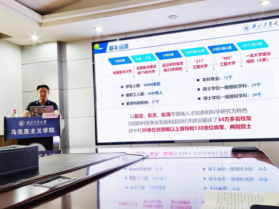 课堂中,王宇波基于学校第十四次党代会精神要求,从学校发展理念、“十四五”期间学校取得的突出成绩以及学校未来发展目标等维度进行讲述,重点结合学校人才培养、师资队伍建设、科技自立自强、学科专业布局、对外开放合作、社会服务等方面详细介绍学校在服务国家重大战略需求过程中,凝心聚力、迎难而上,实现一个又一个跨越式发展,通过摆事实、举例子,拉近了学校发展与师生日常之间的距离,强化了同学们“为党育英才、为国铸重剑”的使命担当。他强调,西工大人的奋斗历程与党和国家的期待同频共振,多年来形成的“西工大现象”以及其背后蕴含的“总师育人文化”是西工大人才培养的特有底色。他要求同学们要坚持从“两个结合”重大命题的角度,深刻理解学校发展过程中西工大人“三实一新”“公诚勇毅”校风校训等精神内涵,切实将中国人百折不挠、激流勇进的进取精神与我们应对两个百年变局的时代事业相结合,希望91国产