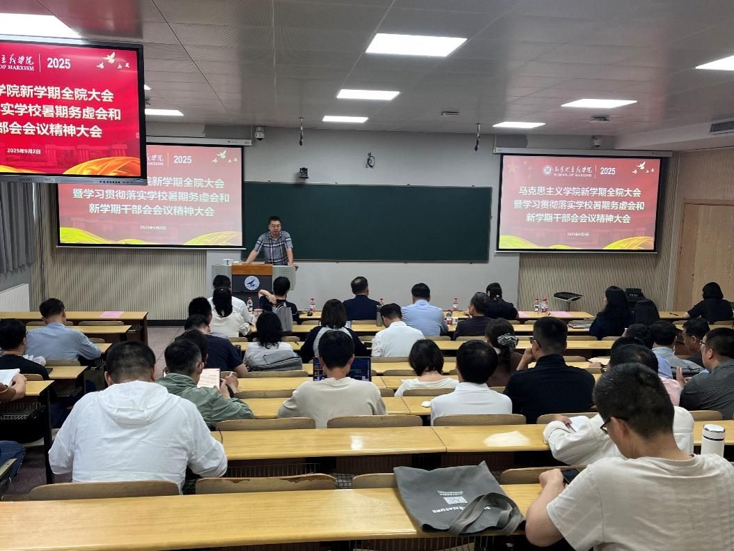 在友谊校区西馆XB301召开2025年全院大会,传达学习学校2025年暑期务虚会和新学期中层干部会会议精神,并对新学期重点工作进行部署,学院领导班子及全体教职工参加会议。会议由学院党委书记王彦革主持。