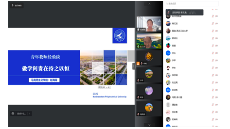 发起主办朋辈思政课《青年教师经验谈》第2期如约而至。本期主讲人为学院青年教师赵海霞副教授,我院全体研究生和部分教师通过在线方式参加了本次讲座。研究生秘书肖妮老师主持报告会。
