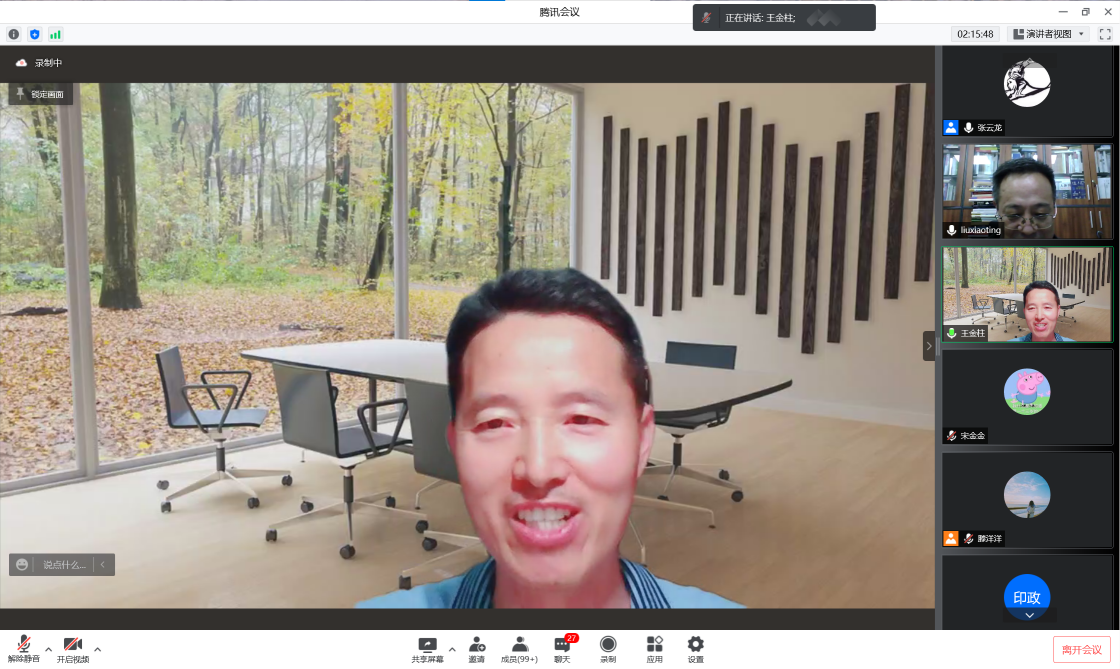 王金柱教授用“纵横捭阖、精彩纷呈、行云流水、哲思翻涌、收获良多”五个词语高度赞扬了刘教授的讲座。他认为,刘教授是以一个多维度的跨学科交叉融合的视角来对人与自然生命共同体的辩证法进行讲解,同时王教授也对讲座的内容进行了全面且深刻的点评。