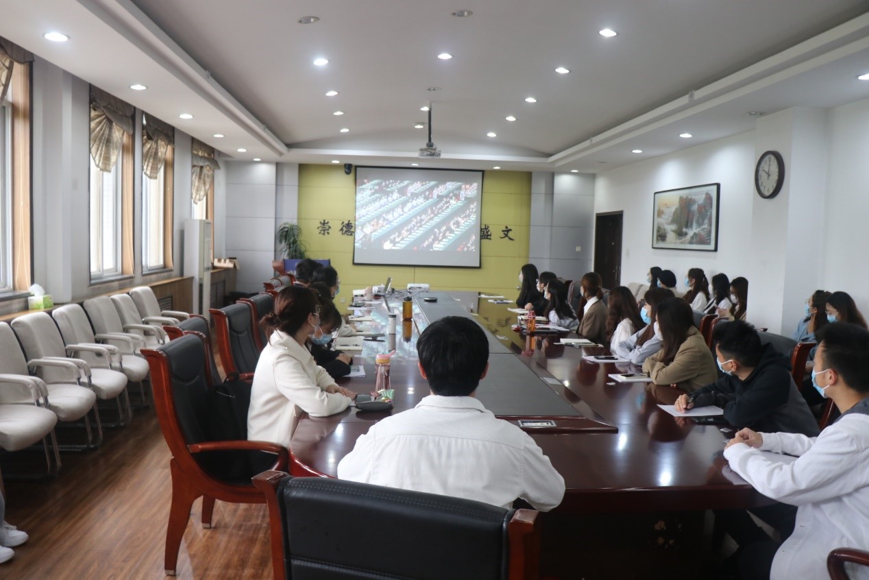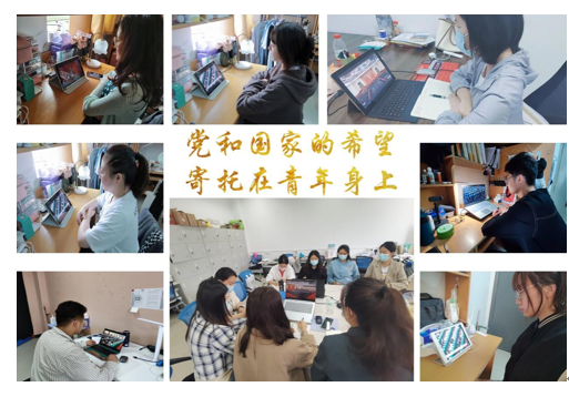 团工委组织全体团员青年以“集中+分散”等多种方式观看了大会实况直播。在学院208会议室,学院党委副书记李刚、团工委书记王换与同学们一同观看直播。