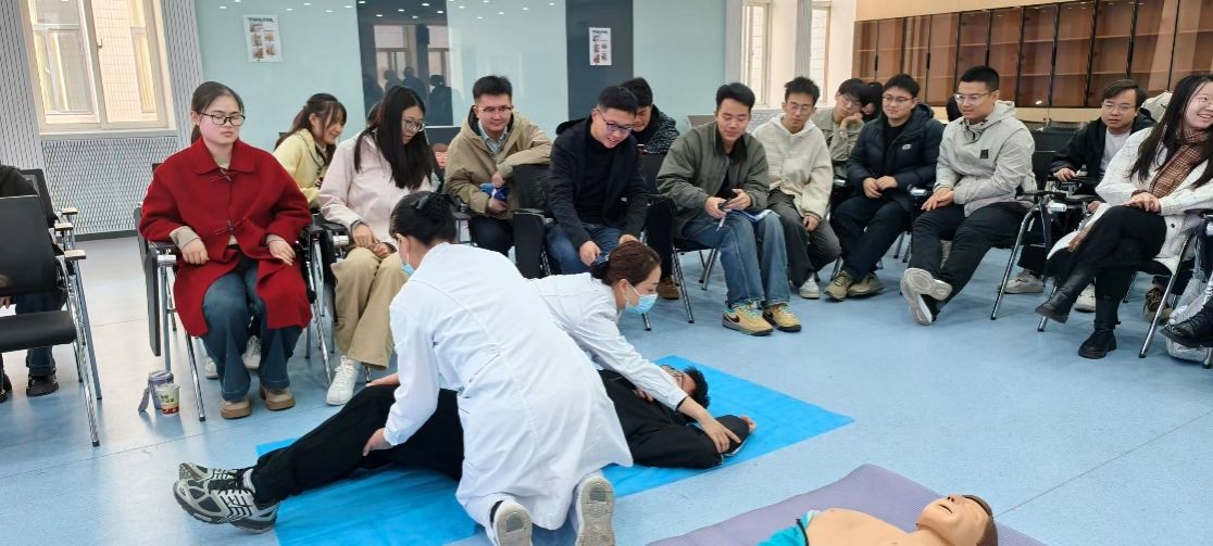 、网络安全学院七十余名师生在长安校区校医院参加急救技能培训。