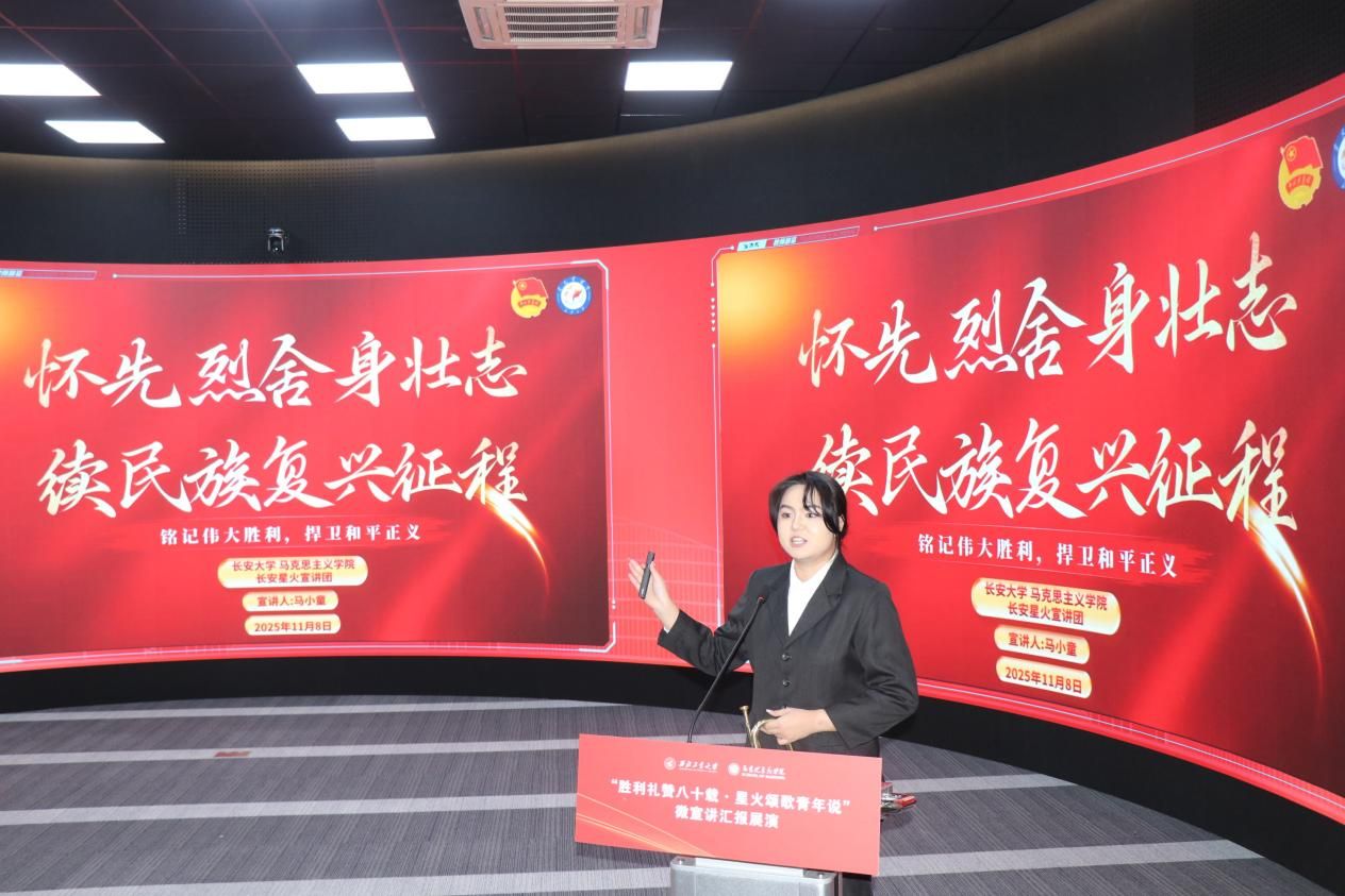 八校汇报展演分为上、下半场有序开展。18位选手紧扣抗战精神主题,或讲述烽火岁月里的红色家书故事,或解读延安精神的时代内涵,或追溯西安事变的历史意义,或聚焦东北抗联精神凝聚复兴力量的深刻阐释,诠释青年担当的深情表达。