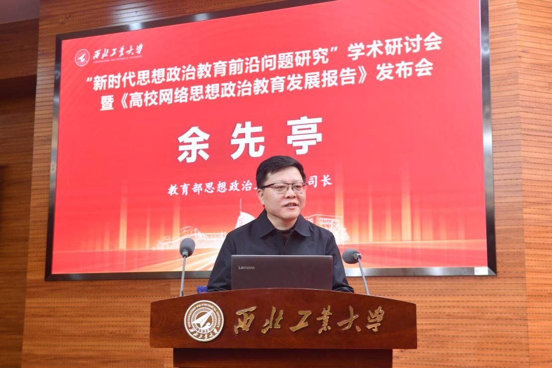 西北工业大学党委常务副书记吕卫东和教育部思想政治工作司副司长余先亭出席开幕式并致辞。开幕式由西北工业大学党委常委、副校长张富利主持。吕卫东代表西北工业大学向与会嘉宾的到来表示热烈欢迎,介绍了学校的办学特色和思想政治工作体系,期待与会人员共同为新时代思想政治教育高质量发展贡献智慧和力量。余先亭围绕“三个聚焦”和“三个关系”深入阐释了新时代学校思想政治工作中的重点、难点及应对策略,系统分析了提升思政工作实效的关键路径。同时,他强调要切实发挥高校思想政治工作创新发展中心的引领作用,以整体推进和机制创新推动思政工作迈上新台阶。