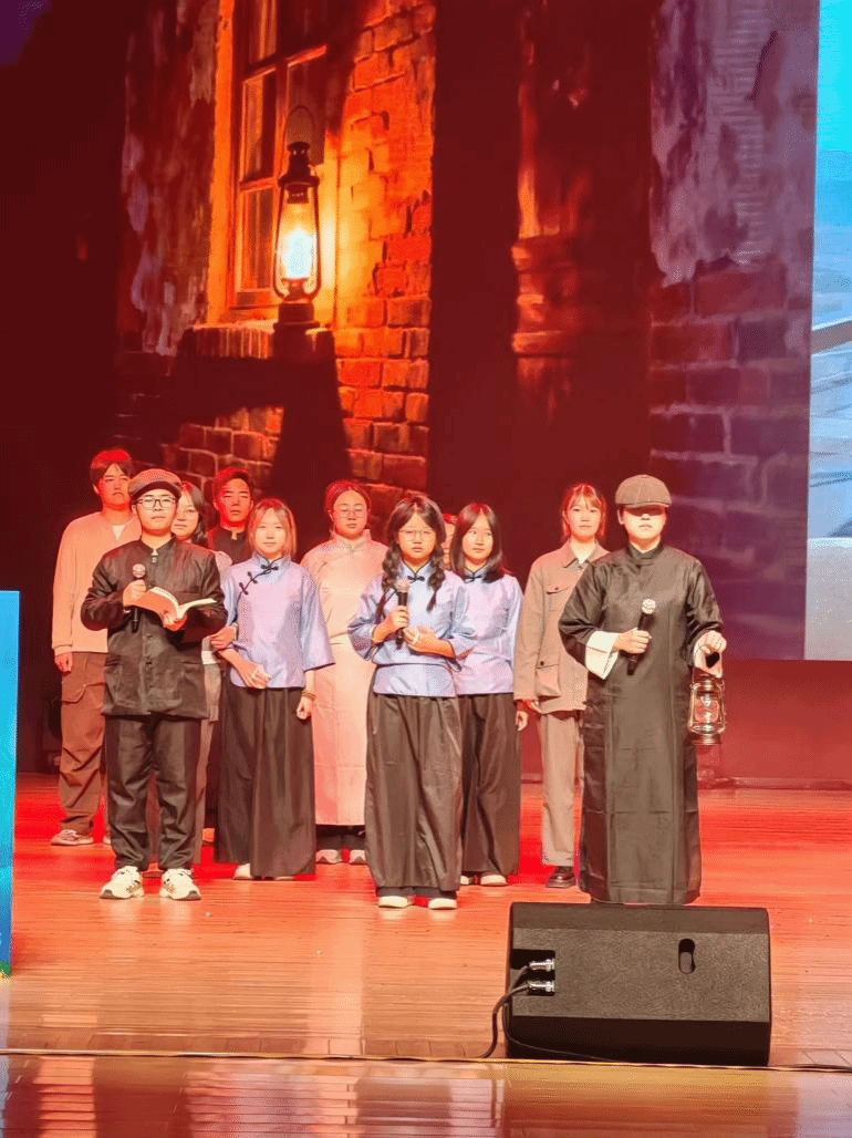 决赛舞台上,我院班级的展演节目匠心独运,以“情景剧+合唱”的融合形式深情呈现。当1938年古路坝的麻油灯火遇上2025年西工大图书馆的灯光,一段跨越近百年的星火传承故事徐徐展开。舞台之上,时空交错:一侧是烽火岁月里,西北工学院学子们在简陋学舍中抱书苦读,以“读好书救中国”的信念坚守初心;另一侧是新时代校园中,91国产