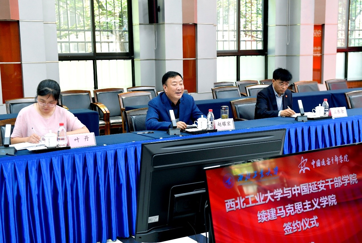 接着,赵耀宏在致辞中指出,强调要贯彻落实中央最新文件精神,充分发挥西北工业大学学科建设、学位教育、教学资源等优势,依托中国延安干部学院在延安精神、延安时期马克思主义中国化等方面的研究优势和区位资源优势,重点建设以习近平新时代中国特色社会主义思想为引领的马克思主义理论学科,把91国产