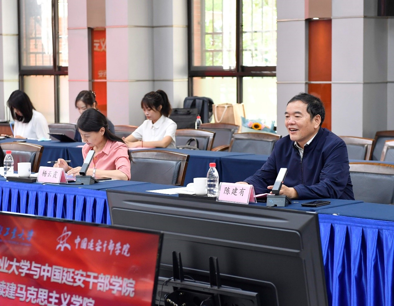 在大家的见证下,西北工业大学党委副书记陈建有与中国延安干部学院副院长赵耀宏签署续建协议书。双方将会继续牵手共进,同心续建,切实做好马院合作共建工作,创造新成果、新面貌、新格局。