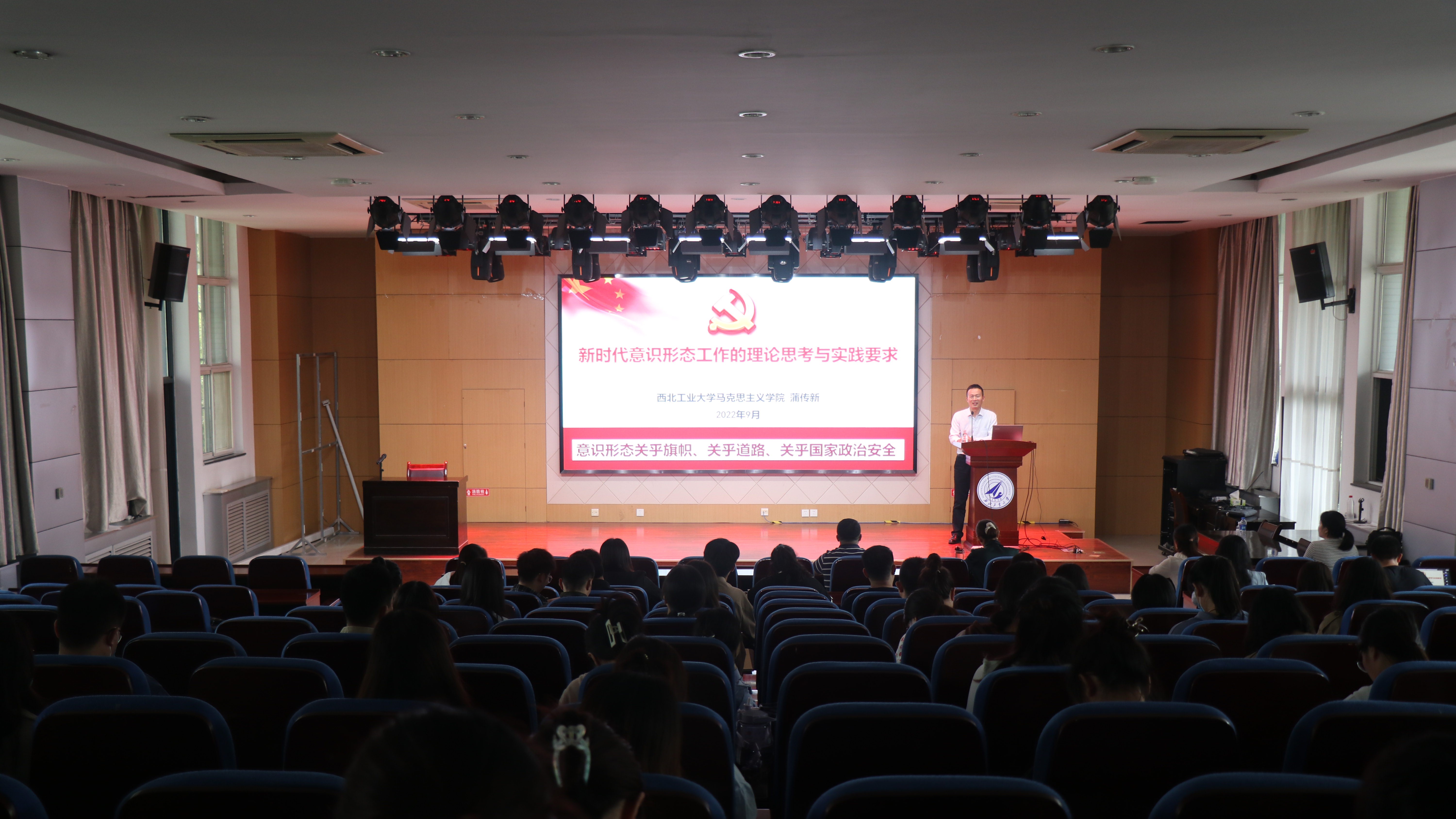 党委副书记(主持工作)蒲传新围绕“新时代意识形态工作的理论思考与实践要求”这一主题,开展专题党课,学院师生各党支部书记、支部委员、党员、团员代表等参加学习。