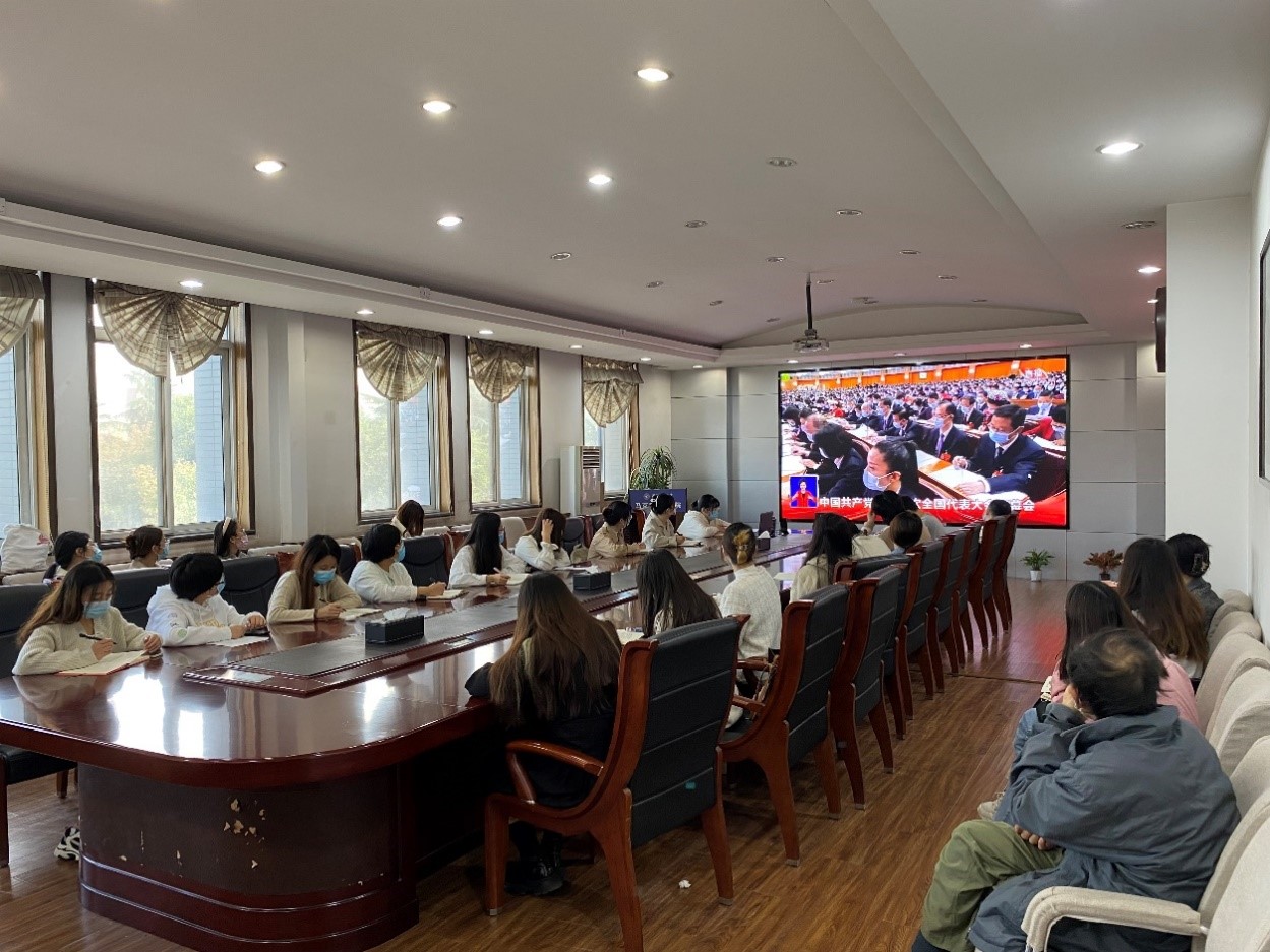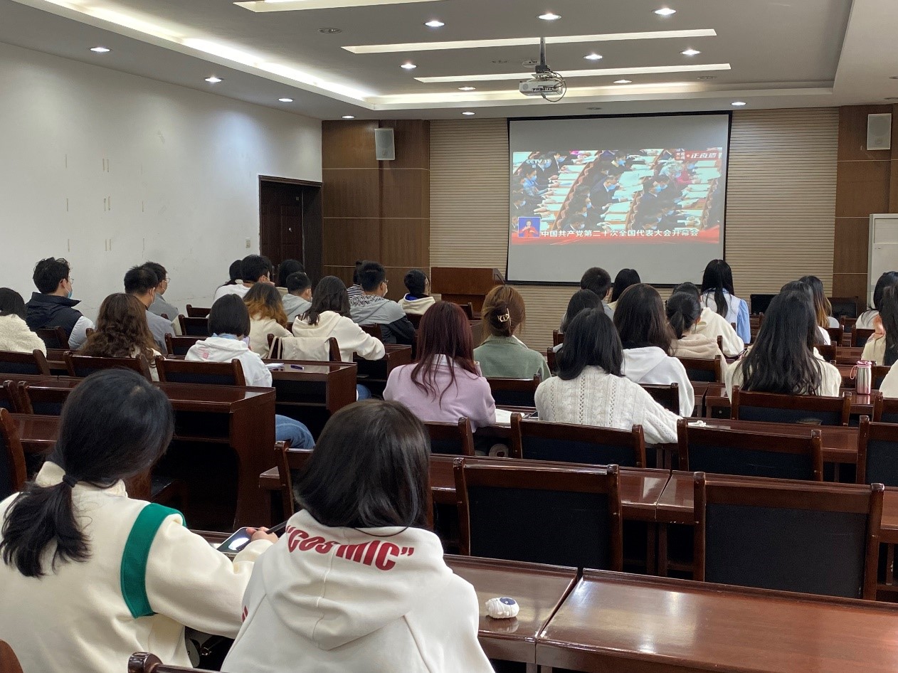 楼207报告厅共同收看党的二十大开幕会直播,认真聆听习近平总书记向大会所作的报告,共同亲历这一庄严的时刻,第一时间学习领会大会精神。学院全体学生在91国产
