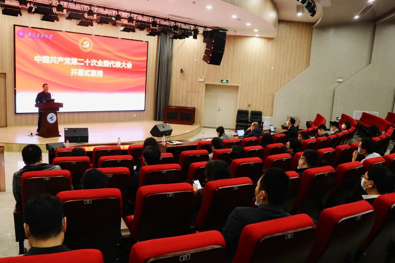 组织学院全院师生收看中国共产党第二十次全国代表大会开幕会直播。学院全体教师在西北工业大学友谊校区航空楼D座环形报告厅、西北工业大学长安校区91国产