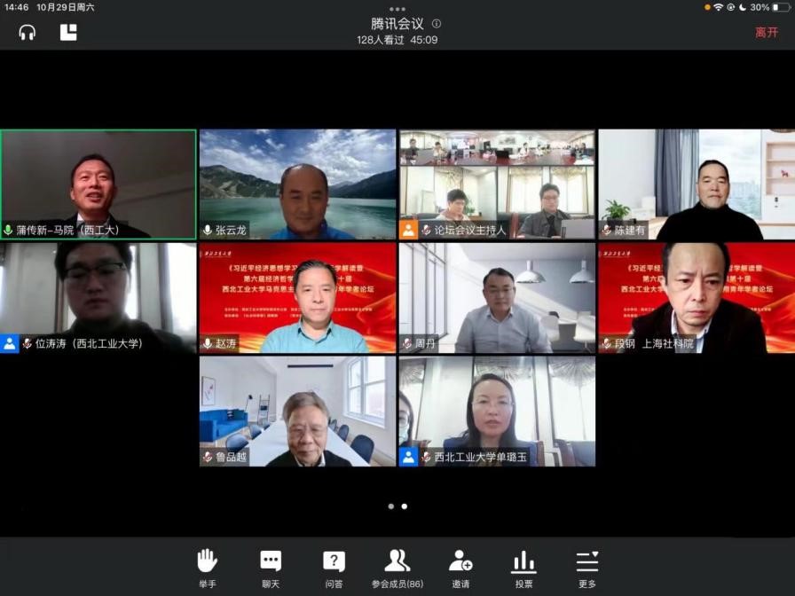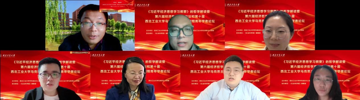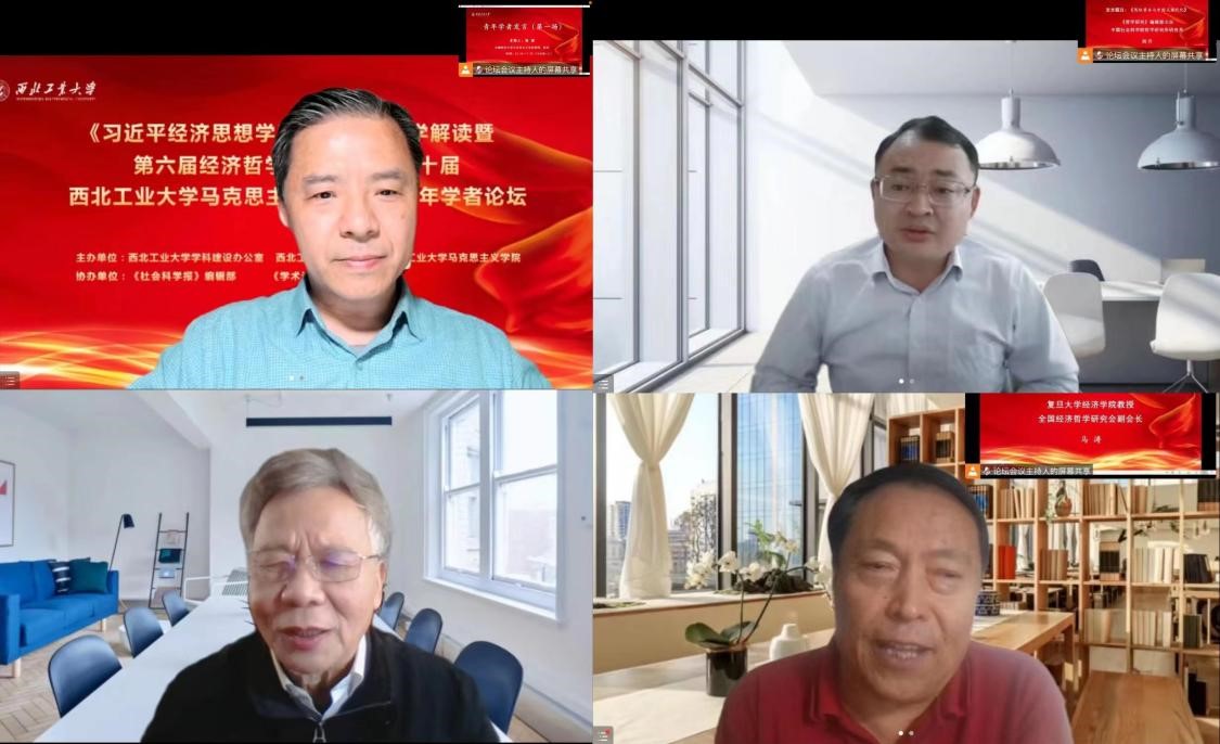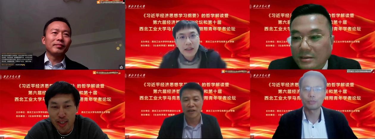 平成涛老师从数字劳动的概念、数字劳动与平台资本之间的关系等方面论述了马克思政治经济学批判视域中的数字劳动问题。西北工业大学马克思主义宁殿霞老师就习近平关于“发展数字经济”重要论述从历史进程、历史机遇、社会变革、战略选择四个方面进行了哲学解读。作为翱翔青年学者代表,西北大学经济管理学院安梦天博士作了题为“比较与超越:西方生态现代化理论与中国式人与自然和谐共生的现代化”的发言、上海财经大学人文学院李茜博士做了题为“数字拜物教的本质及其批判性超越——以习近平数字经济思想为指导”的学术交流。