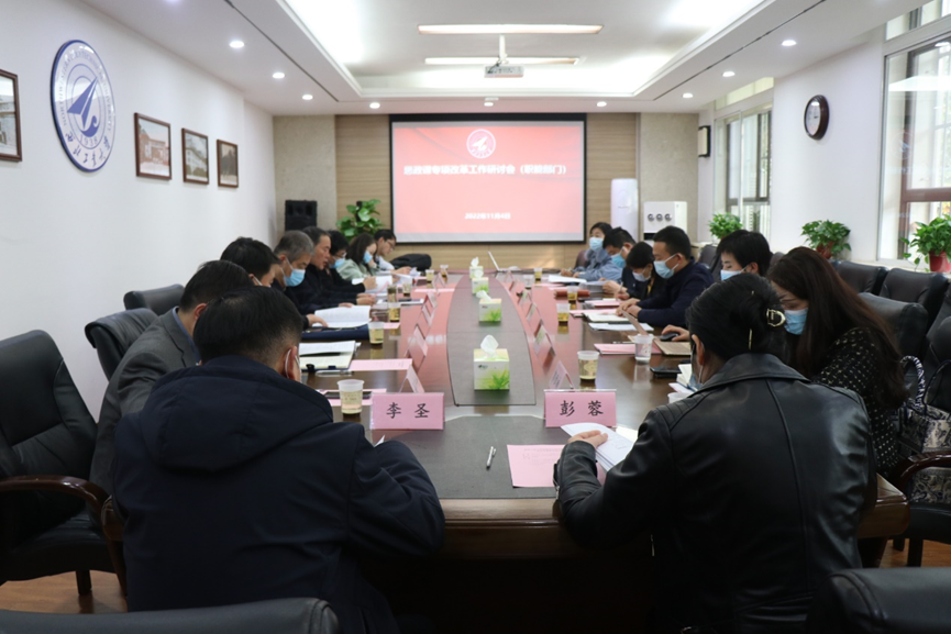 11月4日下午,学校思政课专项改革试点方案研讨会在友谊校区学校办公楼A223会议室举行。学校党委副书记陈建有、发展规划处朱继宏、图书馆侯沛勇、党委宣传部全家悦、人事处王增磊、科学技术研究院李鹏、教务处孙中奎、研究生院李圣、学生处彭蓉及91国产