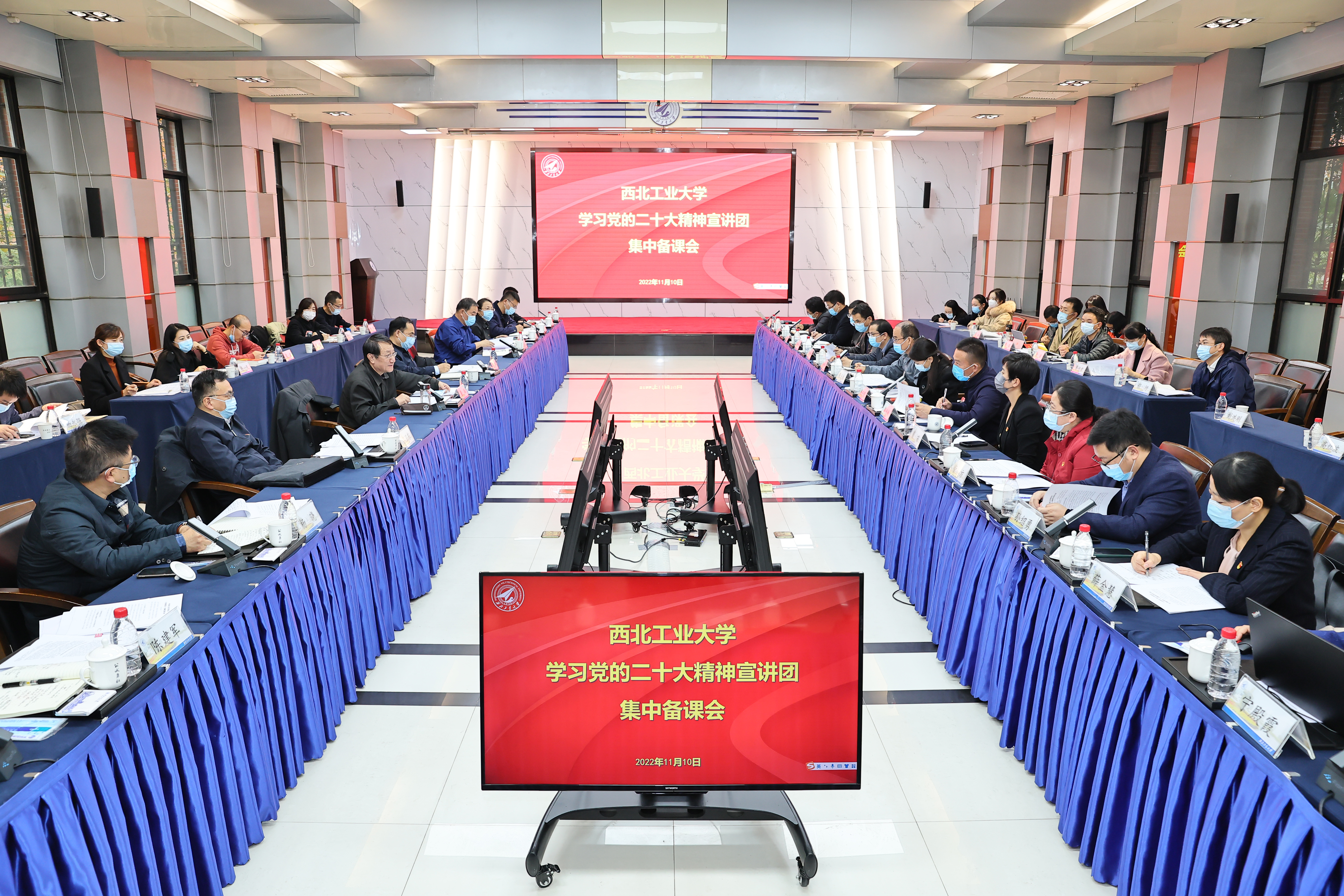学习贯彻党的二十大精神宣讲团集中备课会在友谊校区东会议室召开。西北工业大学党委书记张炜,党委常务副书记程基伟,党委副书记、纪委书记吕卫东,党委副书记陈建有,党委常委、宣传部部长杨晓,宣讲团成员代表等参加了会议。会议由程基伟主持。