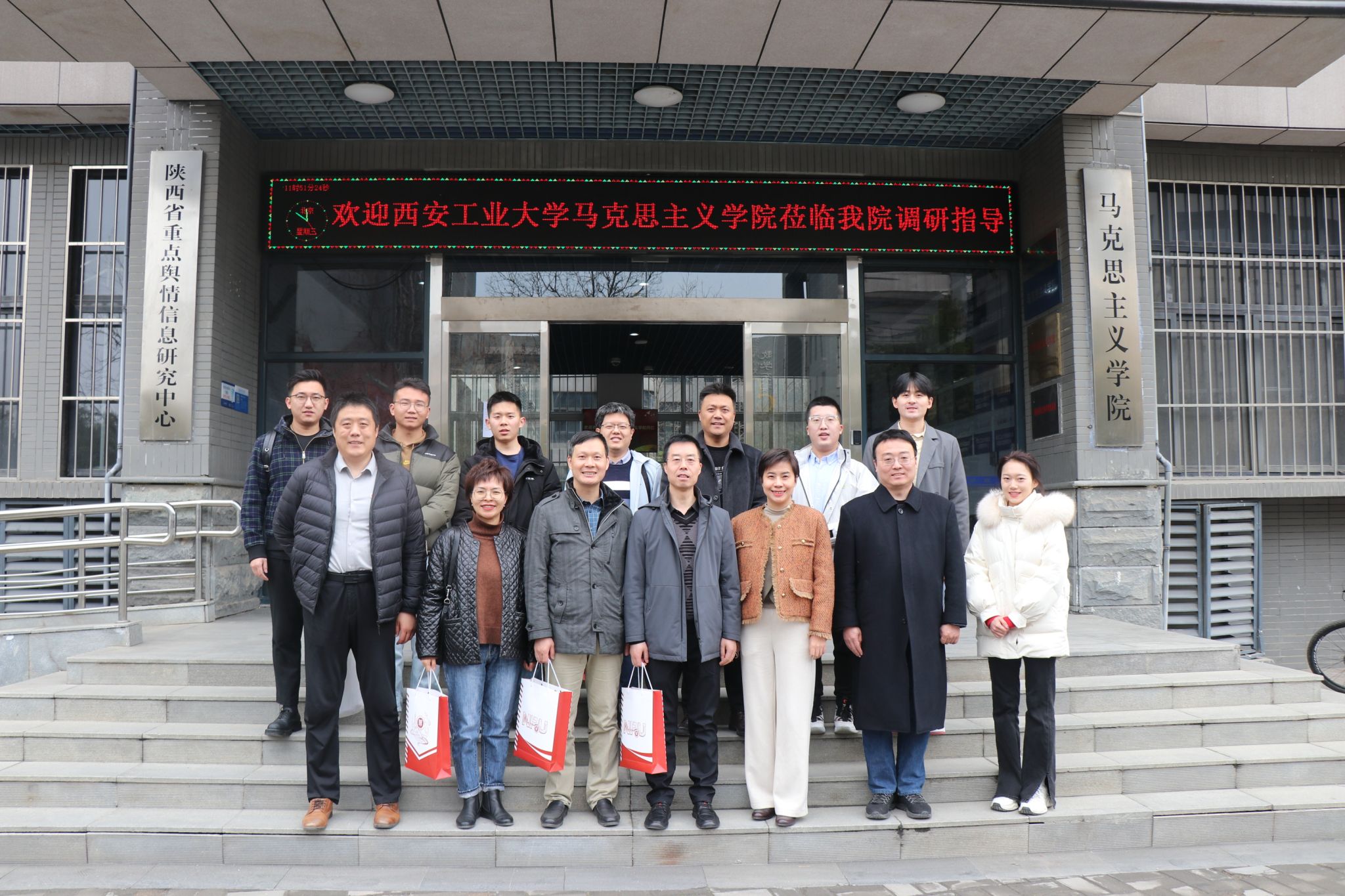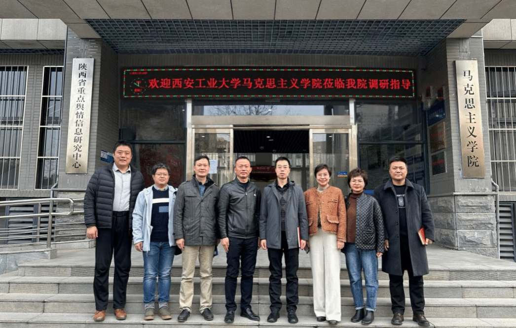 On the morning of 6th March, Liang Huaping, Dean of the School of Marxism of Xi'an Technological University, came to our School for research. Pu Chuanxin, Secretary of the Party Committee, Li Gang, Deputy Secretary of the Party Committee, He Miao, Vice President, teaching directors of each department and teachers' representatives attended the research meeting. The meeting was presided over by He Miao.