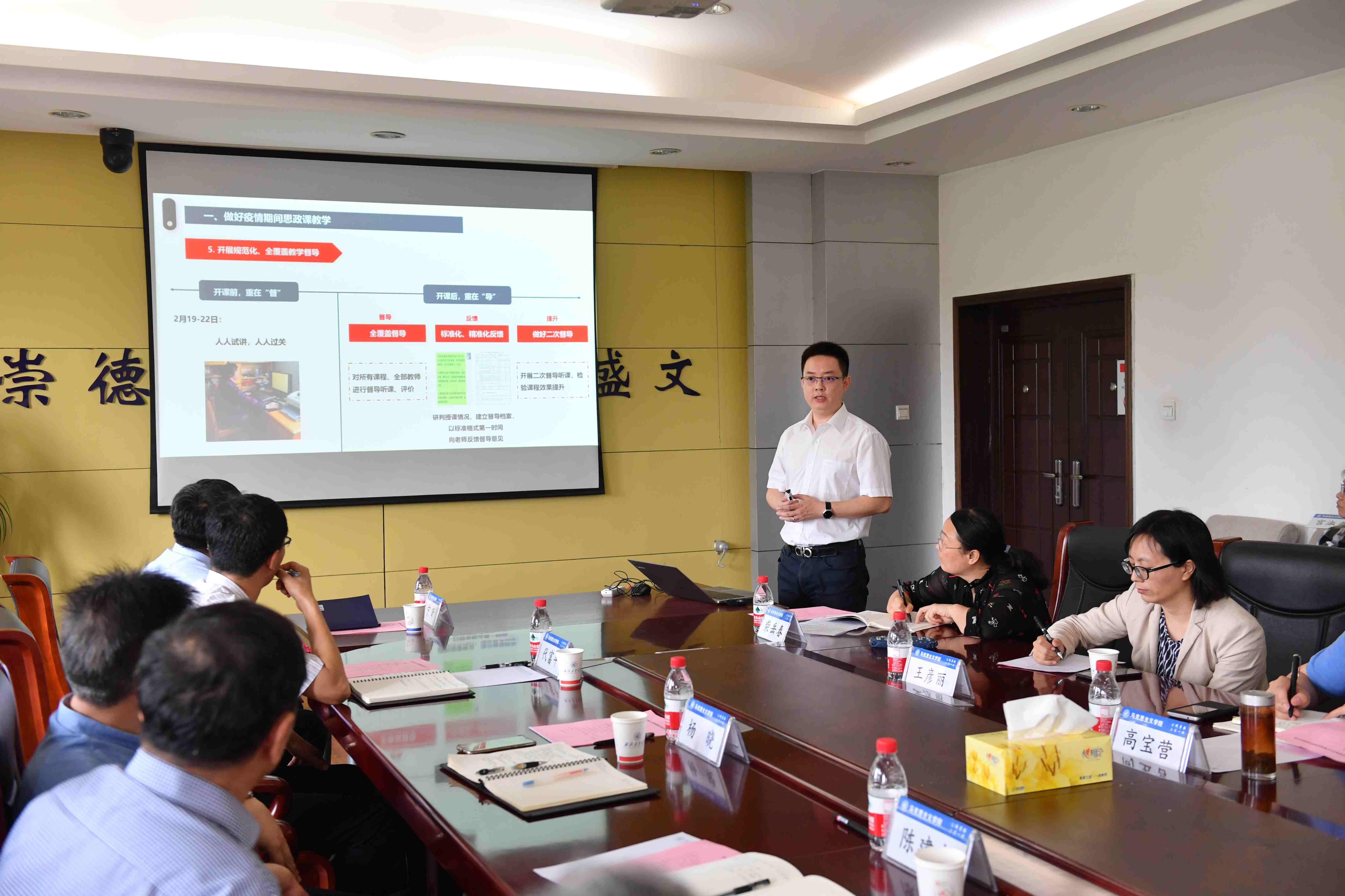 会上,学院党委书记吴闻川从做好疫情期间思政课教学、做好疫情期间思想政治教育、收获体会和存在的问题、下一步工作举措四个方面汇报了学院思政课在线教学及思政课改革创新等方面的总体情况。