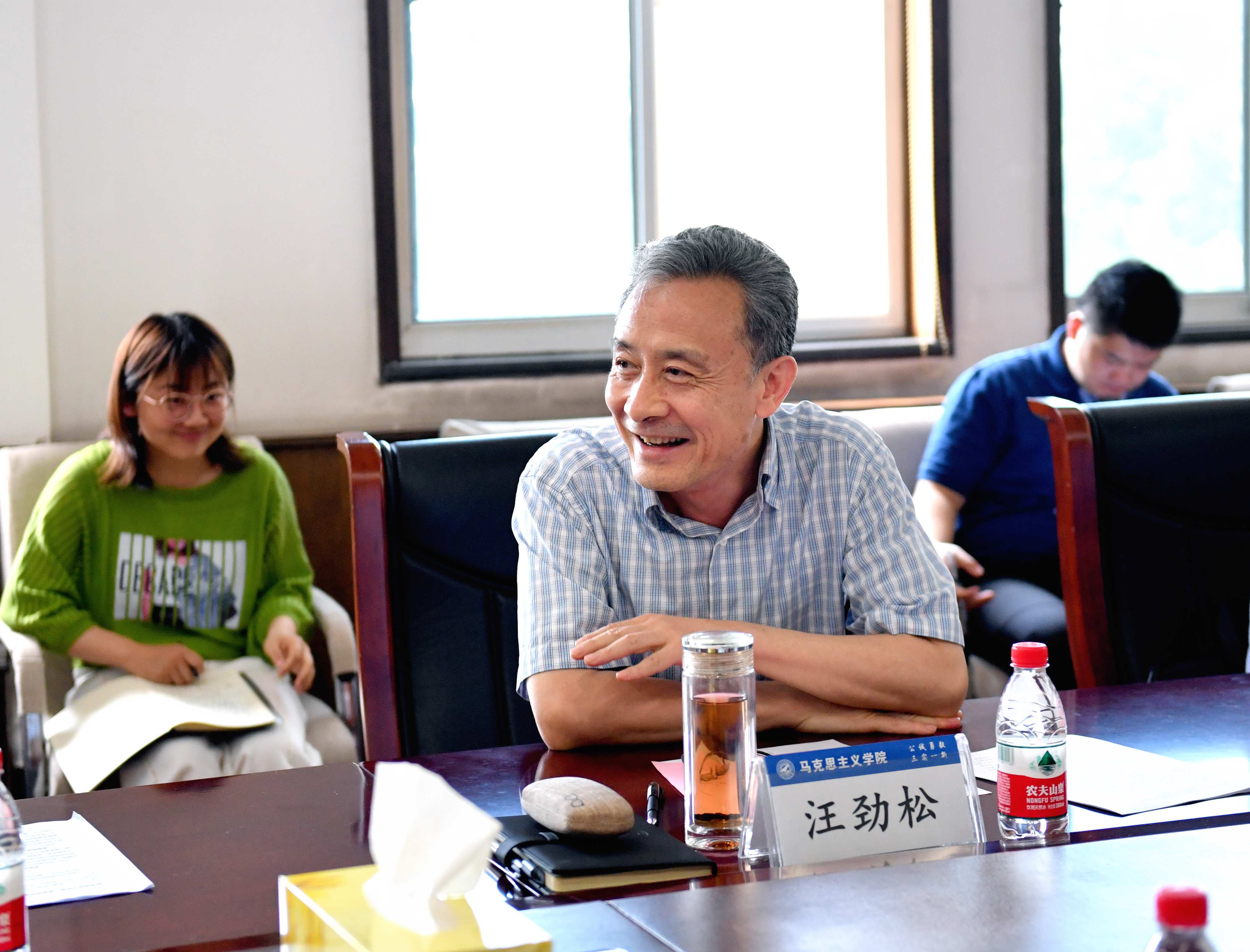 校长汪劲松与师生交谈,对思政课教学提出要求