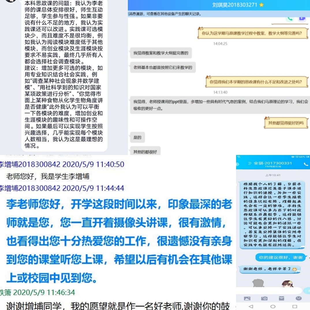 近日,我院根据学校教务处要求,在全院开展本科质量保障全员自查工作。学院所有任课老师积极配合,逐项自查本学期各自教学日历、教案、教学大纲等是否规范,并且针对本科思政课存在的教学问题和整改措施和同学们展开了积极交流,学生们反响热烈,积极参与讨论,为本科思政课教学改革建言献策。