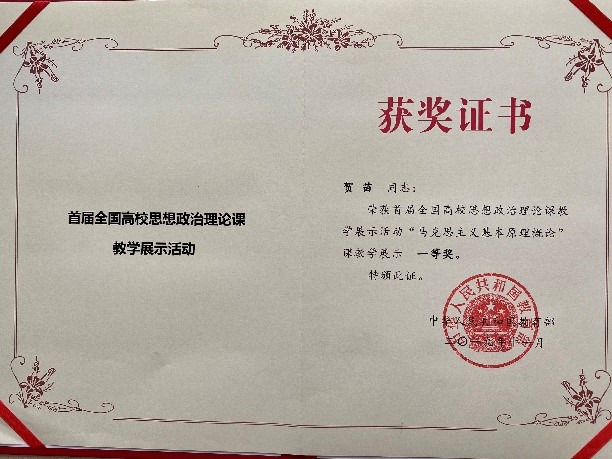 日前,教育部“首届全国高校思想政治理论课教学展示活动”证书下发,我院两位老师获此殊荣,贺苗老师获一等奖,蒲瑶老师获二等奖,这是我院在全国范围内思政理论课教学活动中取得的又一项佳绩。