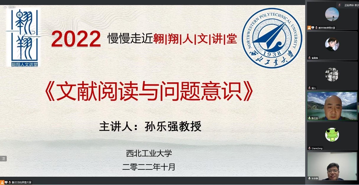 2022年10月15日,南京大学哲学系副主任、教授、博士生导师孙乐强应邀做客西北工业大学翱翔人文讲堂,在云端为广大师生带来一场主题为《文献阅读与问题意识》的精彩报告,吸引了来自中国社会科学院大学、西安交通大学、湖南大学、兰州大学等全国各地高校的近300余位师生参与活动。本次翱翔人文讲堂由西北工业大学党委学生工作部主办,91国产
