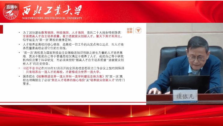 组织教工党支部书记、机关党支部党员同志在学院楼208会议室集中观看学习贯彻习近平新时代中国特色社会主义思想和党的二十大精神报告会。报告会由学校党委副书记、纪委书记吕卫东主持。浙江大学高教研究所教授眭依凡主讲。