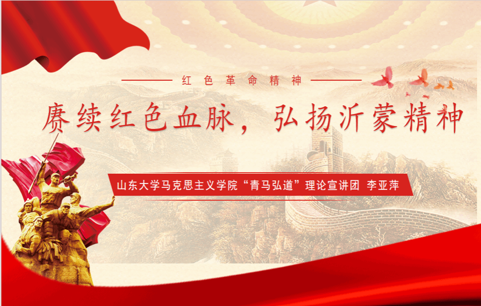 第一环节主题宣讲中,汪毅、蓝愉、陈衍琪、李亚萍四位同学跟与会师生一起深入学习中国共产党人精神谱系之延安精神、沂蒙精神和井冈山精神,深刻领悟伟大建党精神,汲取奋进力量,谱写时代华章。