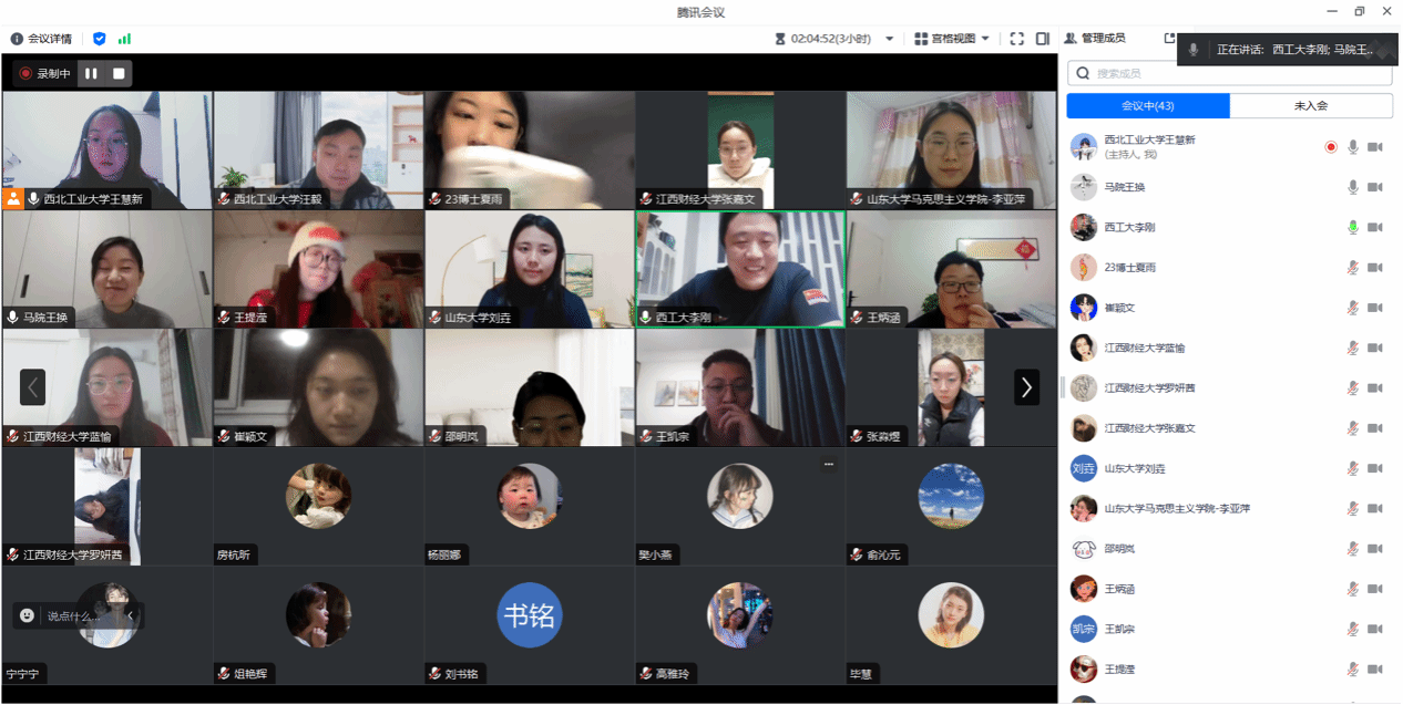 “青马弘道”理论宣讲团开展的“扬理想风帆 悟初心使命”青马宣讲团学习交流活动在线上进行,学院党委副书记李刚、各校宣讲团成员及青马学子相聚“云端”,活动由学院团委书记、硕士生辅导员王换主持。