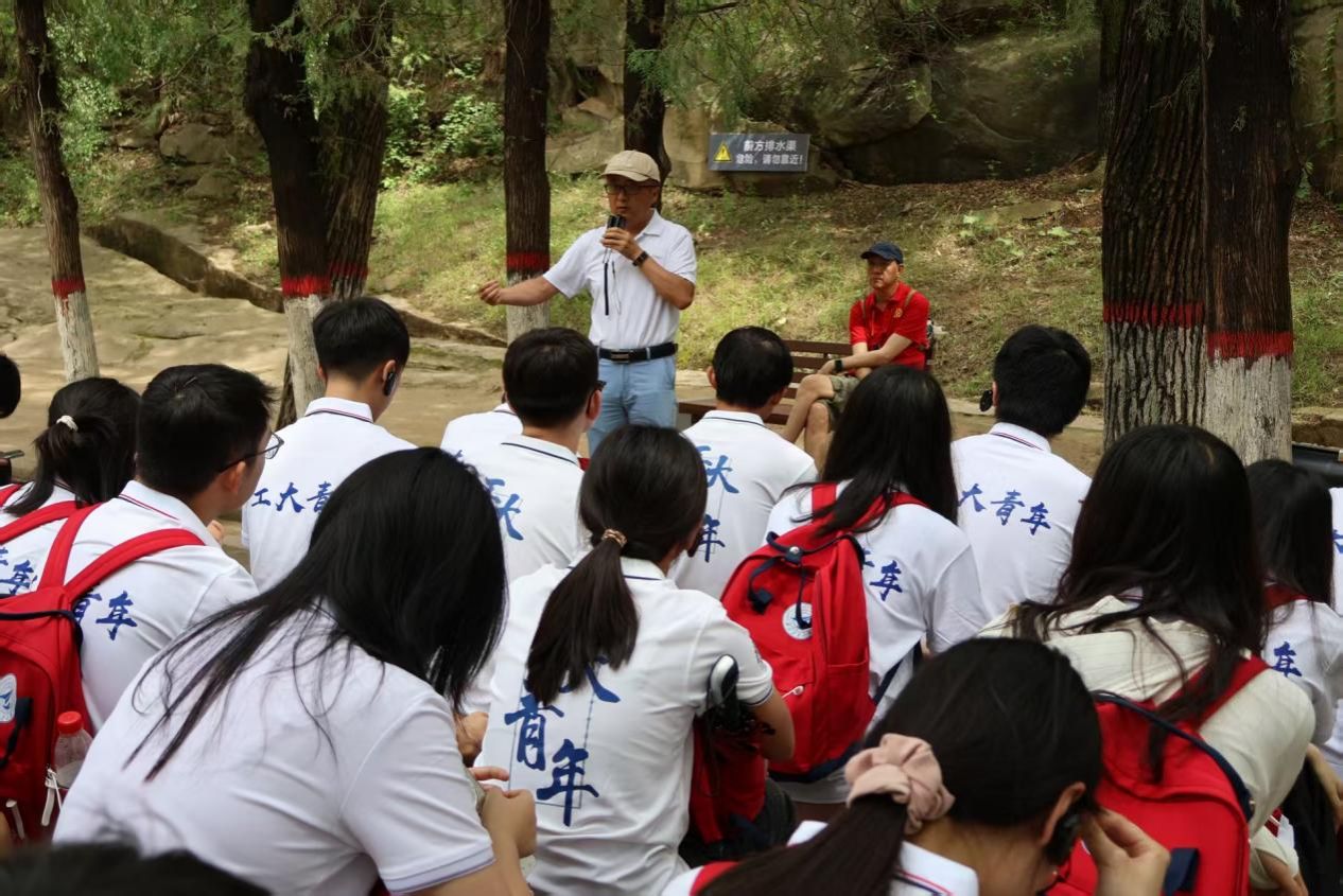 理论课堂的地点选在了三川交汇处的延安大学。这所由我党首创的综合性大学,厚重的红色文化底蕴仍浸润在校舍的一砖一瓦之中。延安大学泽东青年干部学校副校长王娜为此次实践教育活动致辞并授旗。同行的光电与智能研究院的侯祥晴老师以“积极向党组织靠拢,从撰写入党申请书开始”为题,与同学们开展了一场意义非凡的专题研讨教学。